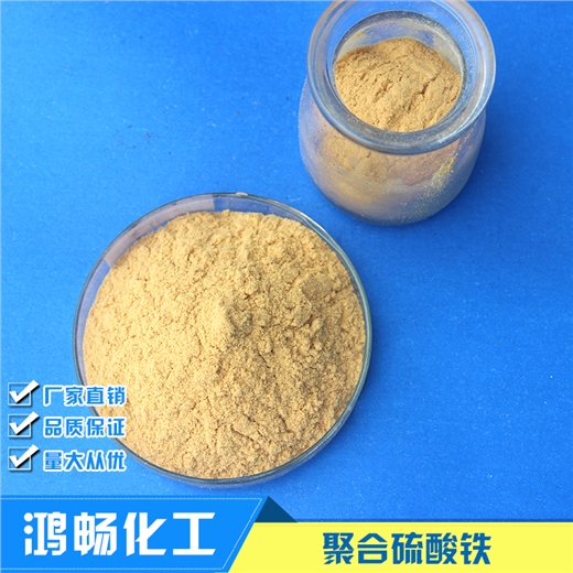 聚合硫酸铁有固体和液体两种,固体产品经化验测得全铁含量为21.5%,液体产品全铁含量为11%-16%范围,液体聚合硫酸铁可以与水以任意比例快速混合,溶液中含有大量的:(Fe2(OH)3)3+、(Fe3(OH)6)3+、(Fe8(OH)28)4+等聚合铁结合离子,比一般的无机混合凝剂有较大的分子量,用作水处理剂时,具有较强的吸附、絮桥、凝聚沉淀性能,且絮凝体形成大而快,絮体不易破碎,重凝性能好,沉淀后的水过滤快,净水PH值范围宽等优点。聚合硫酸铁都需要溶解之后才能使用,聚合硫酸铁的溶解是酸性有腐蚀性所以使用方法和储存方法非常重要。